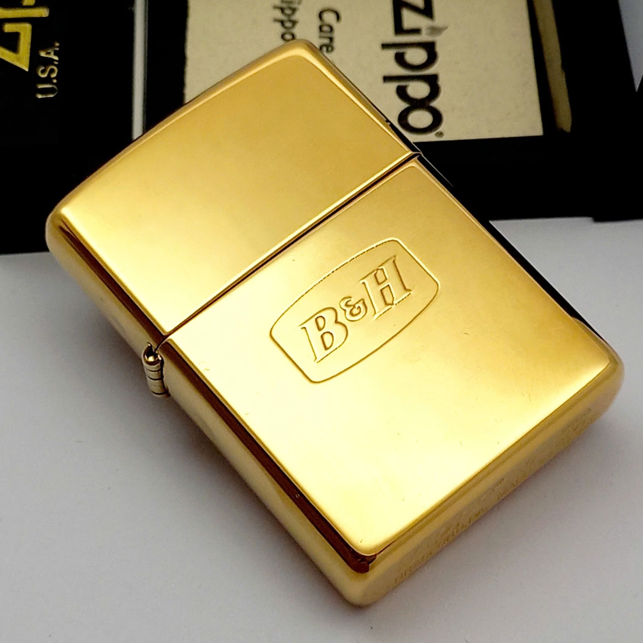 Bật Lửa Zippo Đồng Nguyên Khối Dập Nổi Logo Chữ B&H Hiếm Gặp Mộc Đáy Kép Đời XVI Năm 2000 ZL725