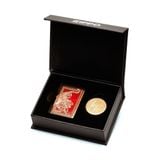 Được đóng gói trong một chiếc hộp đẹp mắt, họa tiết 2 mặt sang trọng đi kèm với đồng xu kỷ niệm mạ vàng.