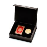 Được đóng gói trong một chiếc hộp đẹp mắt, họa tiết 2 mặt sang trọng đi kèm với đồng xu kỷ niệm mạ vàng.