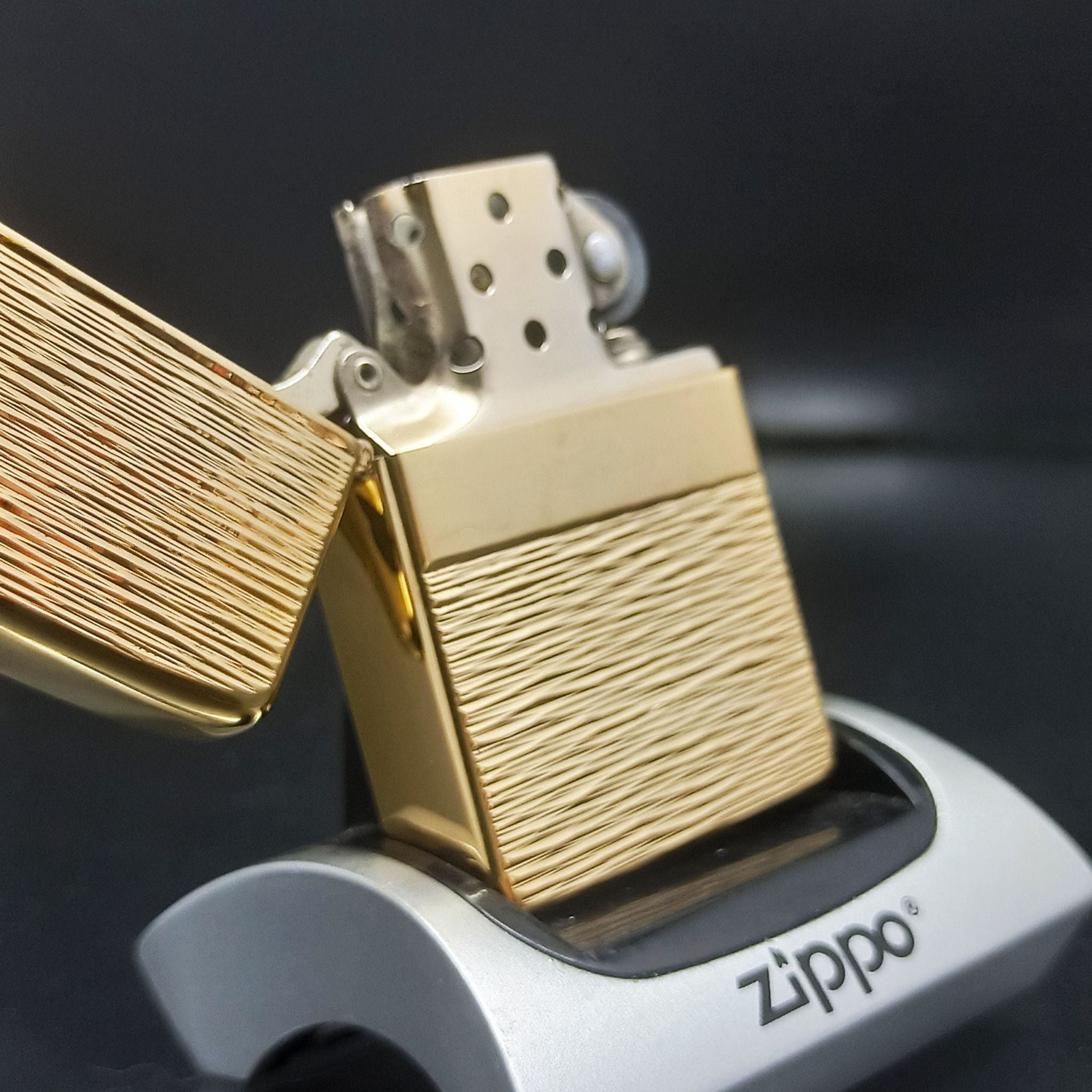 Bật Lửa Zippo Mạ Vàng Gold Plated Đời 5 Vạch Sắc Năm 1977 Rất Hiếm ZQH130