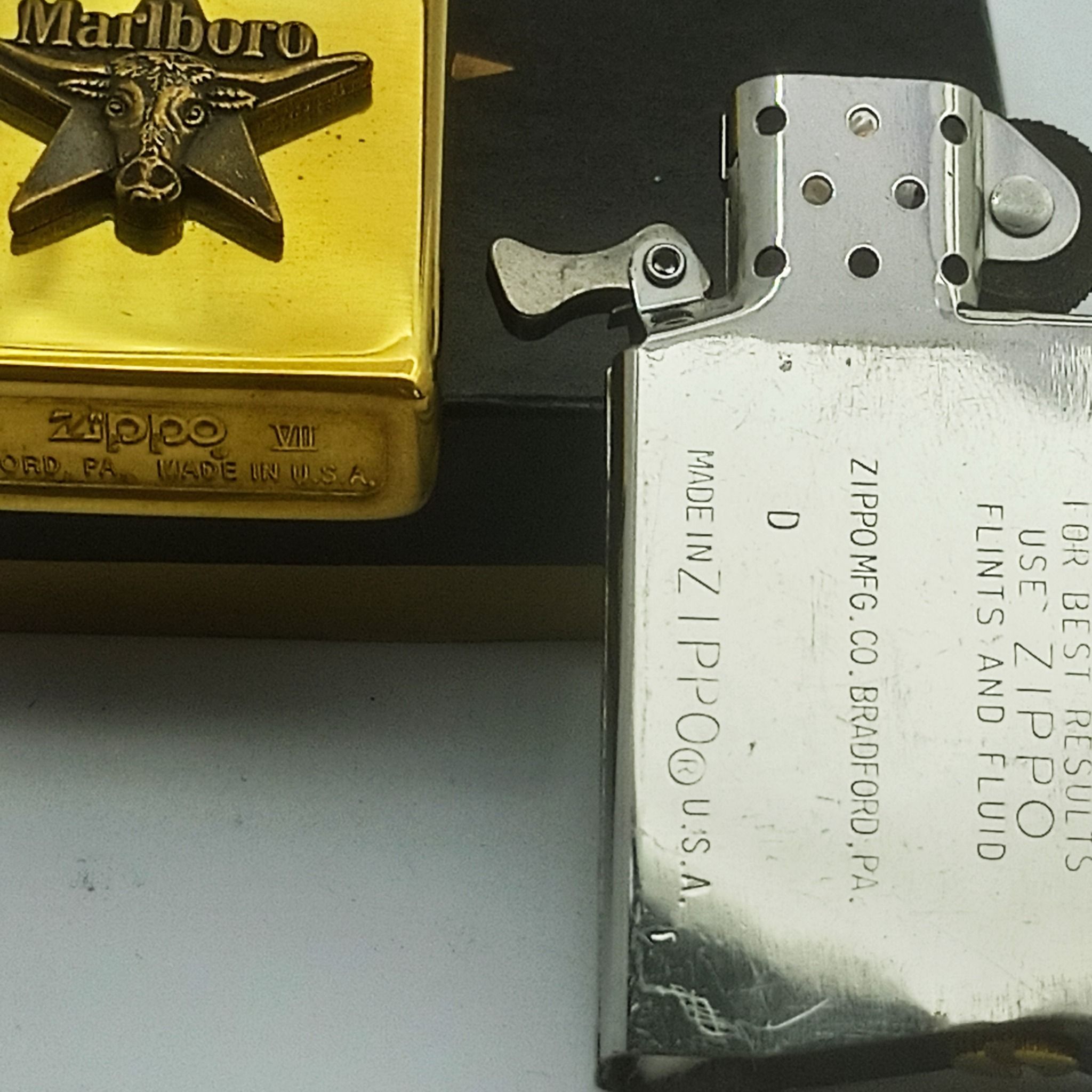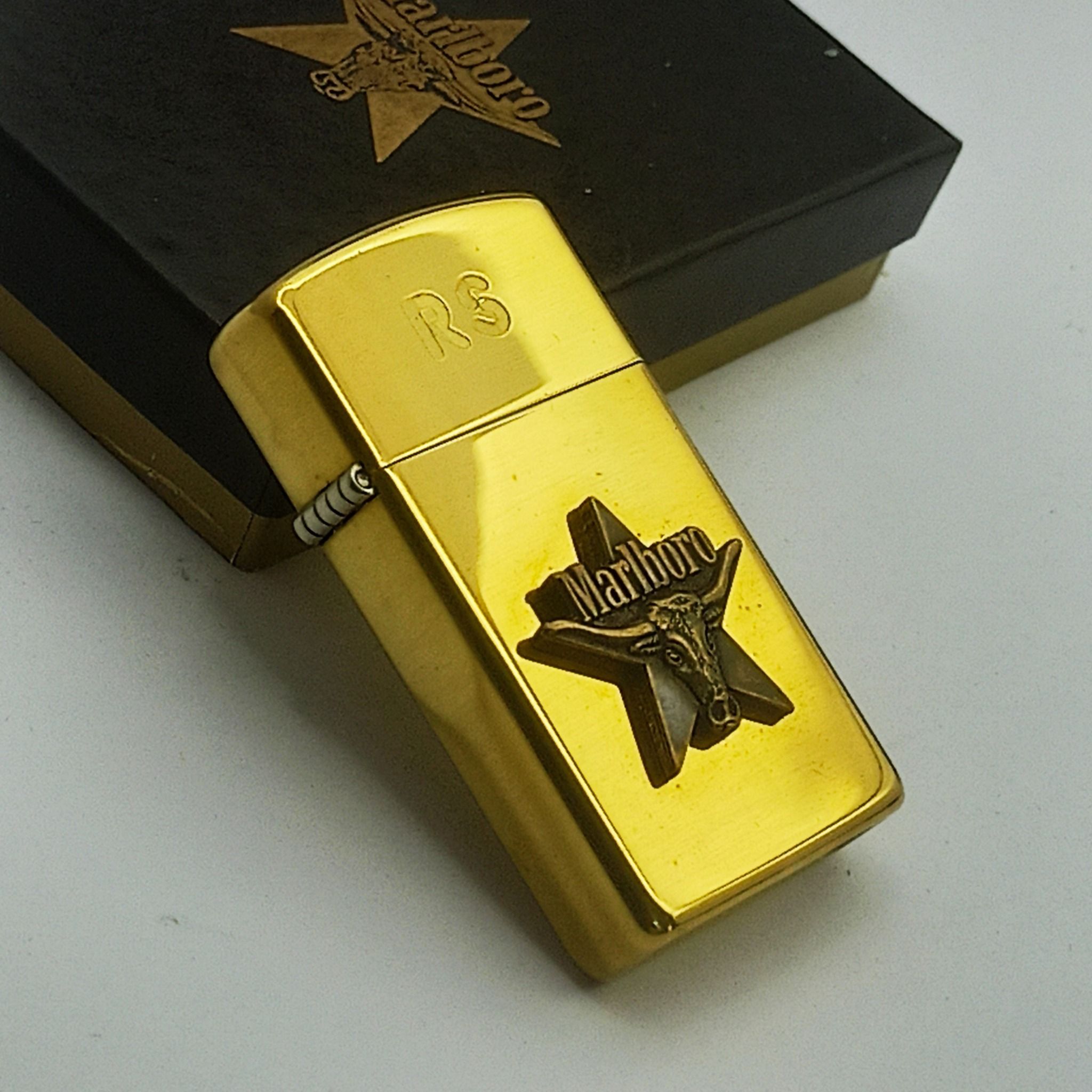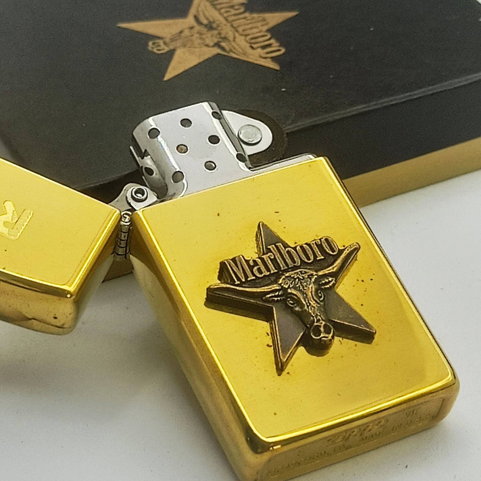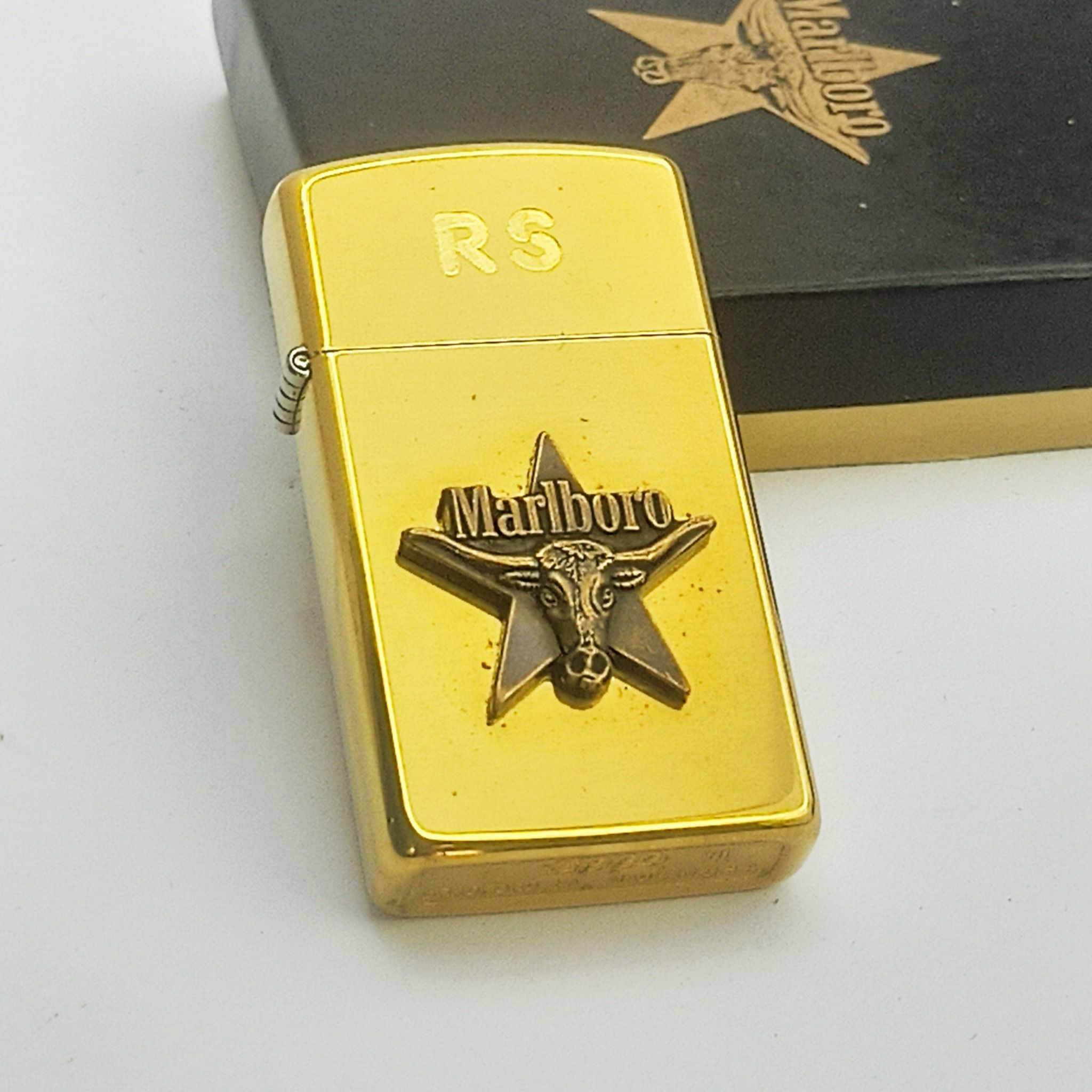 Bật Lửa Zippo Slim Đồng Khối Marlboro Longhorns Đầu Bò Đời VII La Mã Năm 1991 Cực Hiếm Gặp ZL604