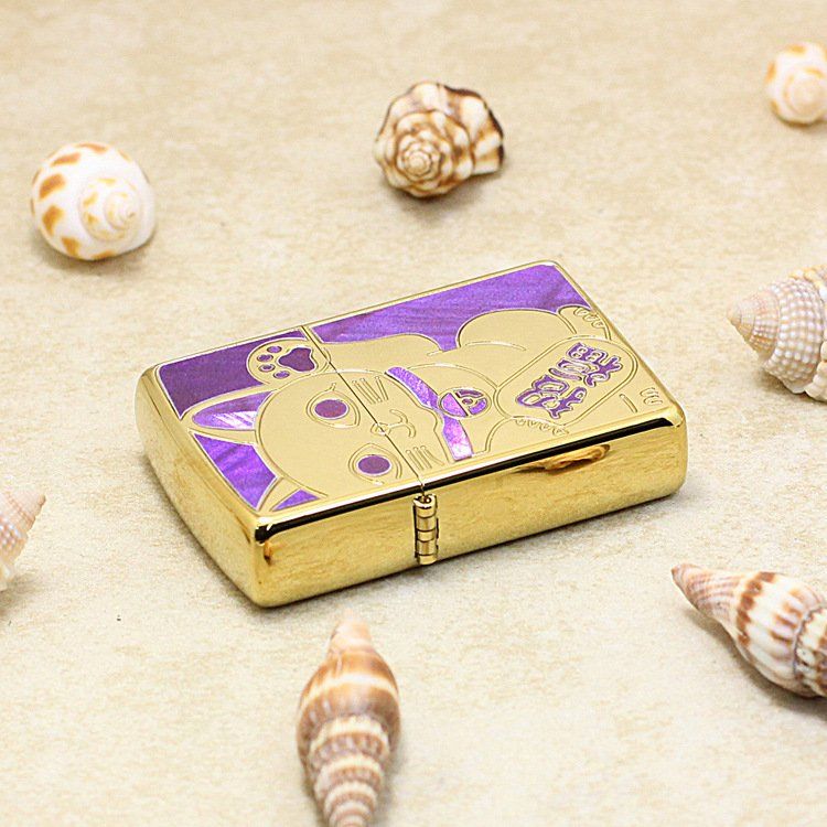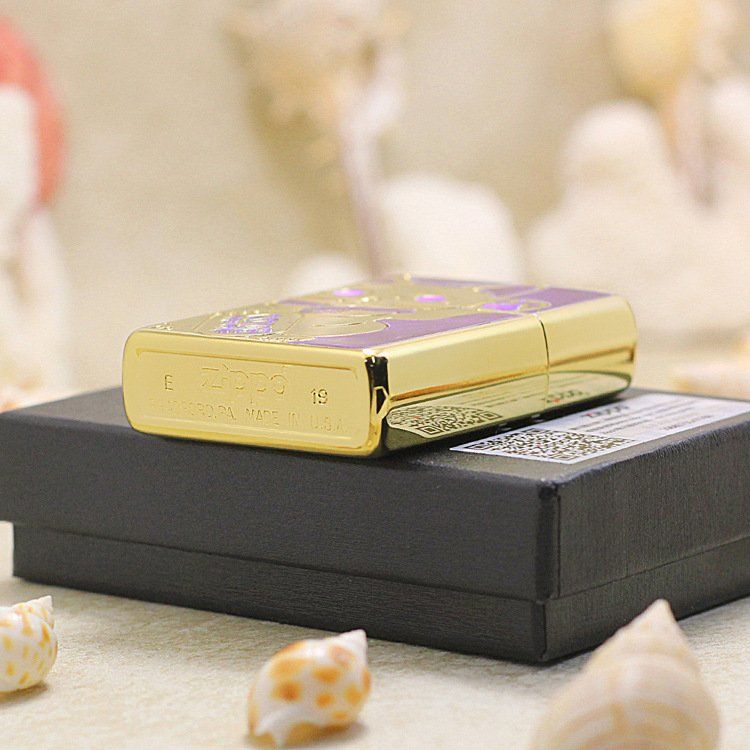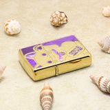 BẬT LỬA ZIPPO USA XUẤT NHẬT KHẢM XÀ CỪ MÈO CHIÊU TÀI MAY MẮN MẠ VÀNG BÓNG NỀN TÍM - ZN94