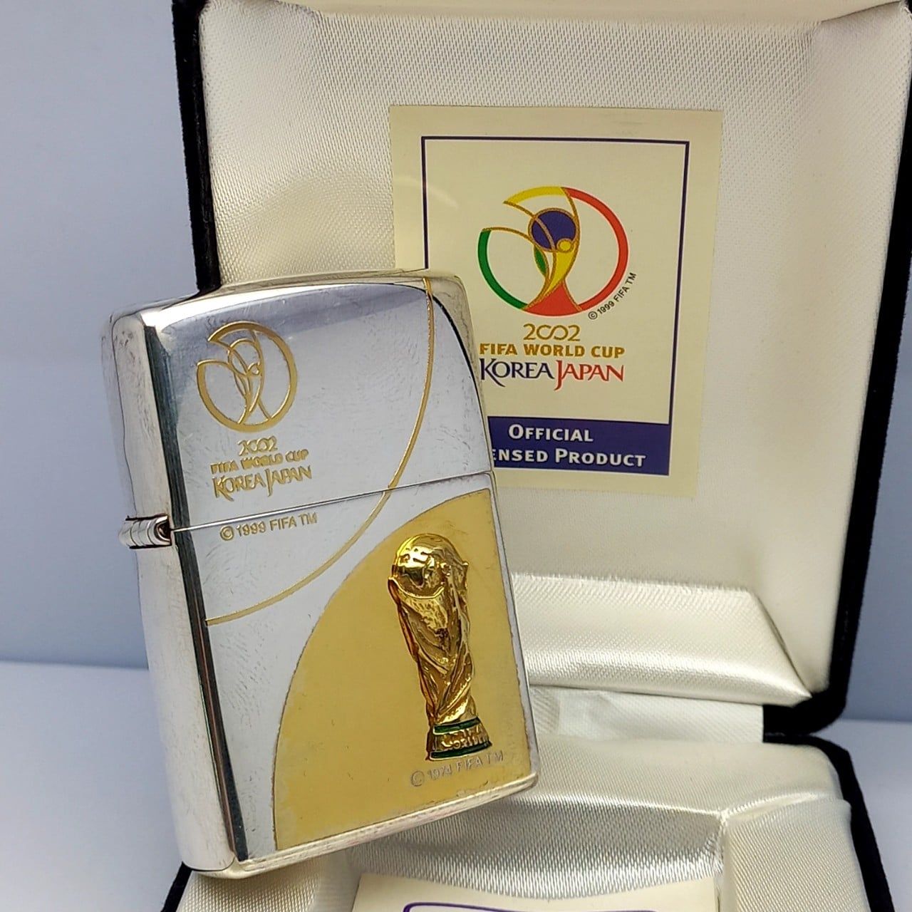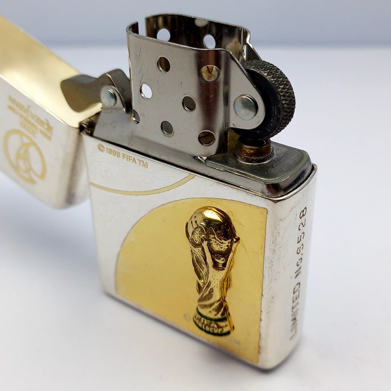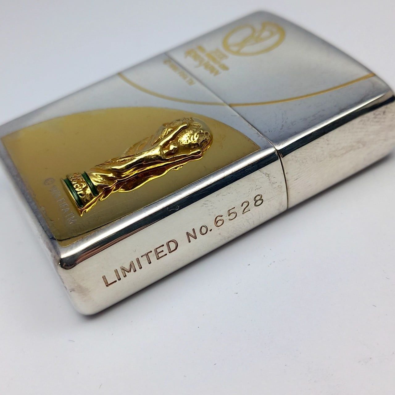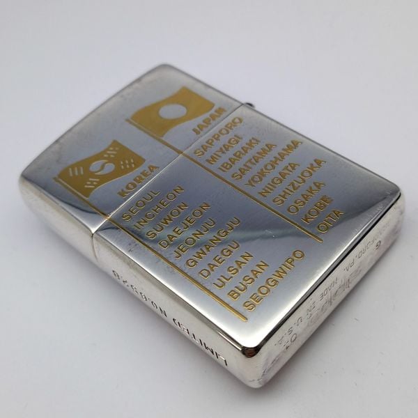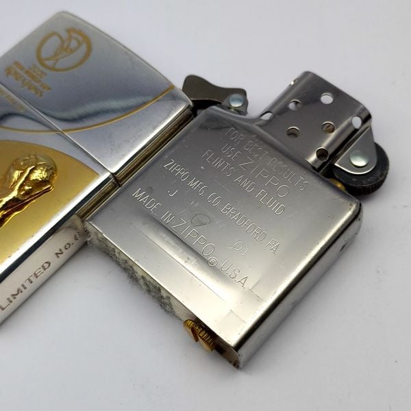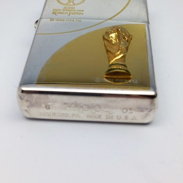 Bật Lửa Zippo Wold Cup Bản Limited Mạ Bạc Đắp Nổi Vàng 2 Mặt Năm 2001 ZL405