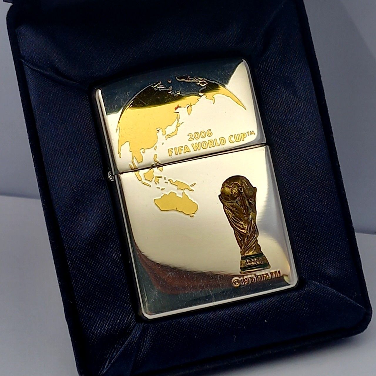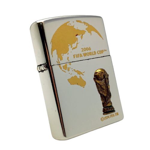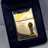 Bật Lửa Zippo Wold Cup Bản Limited Mạ Bạc Đắp Nổi Vàng 2 Mặt Năm 2005 ZL423