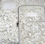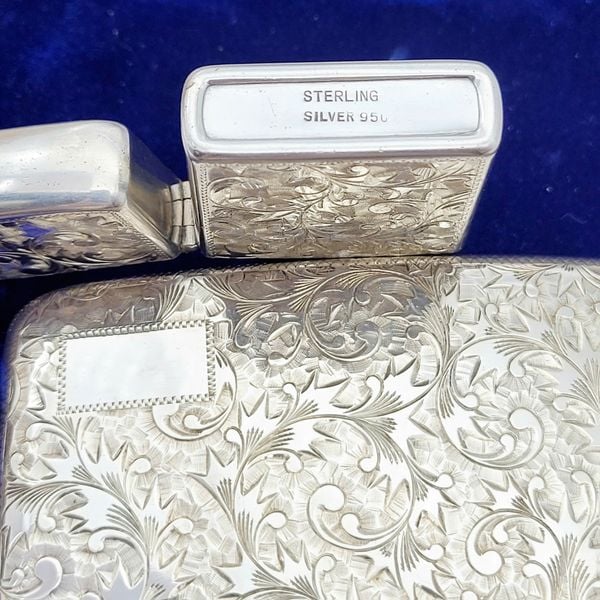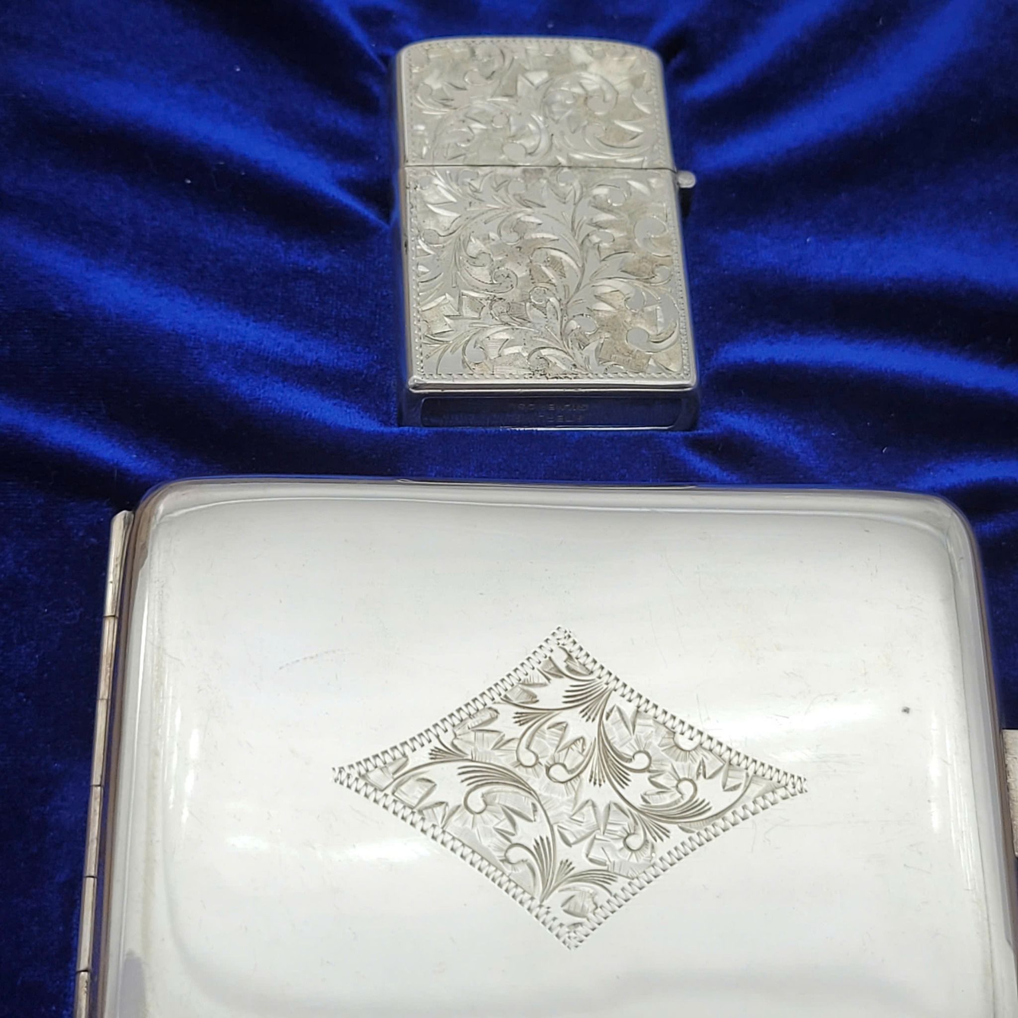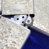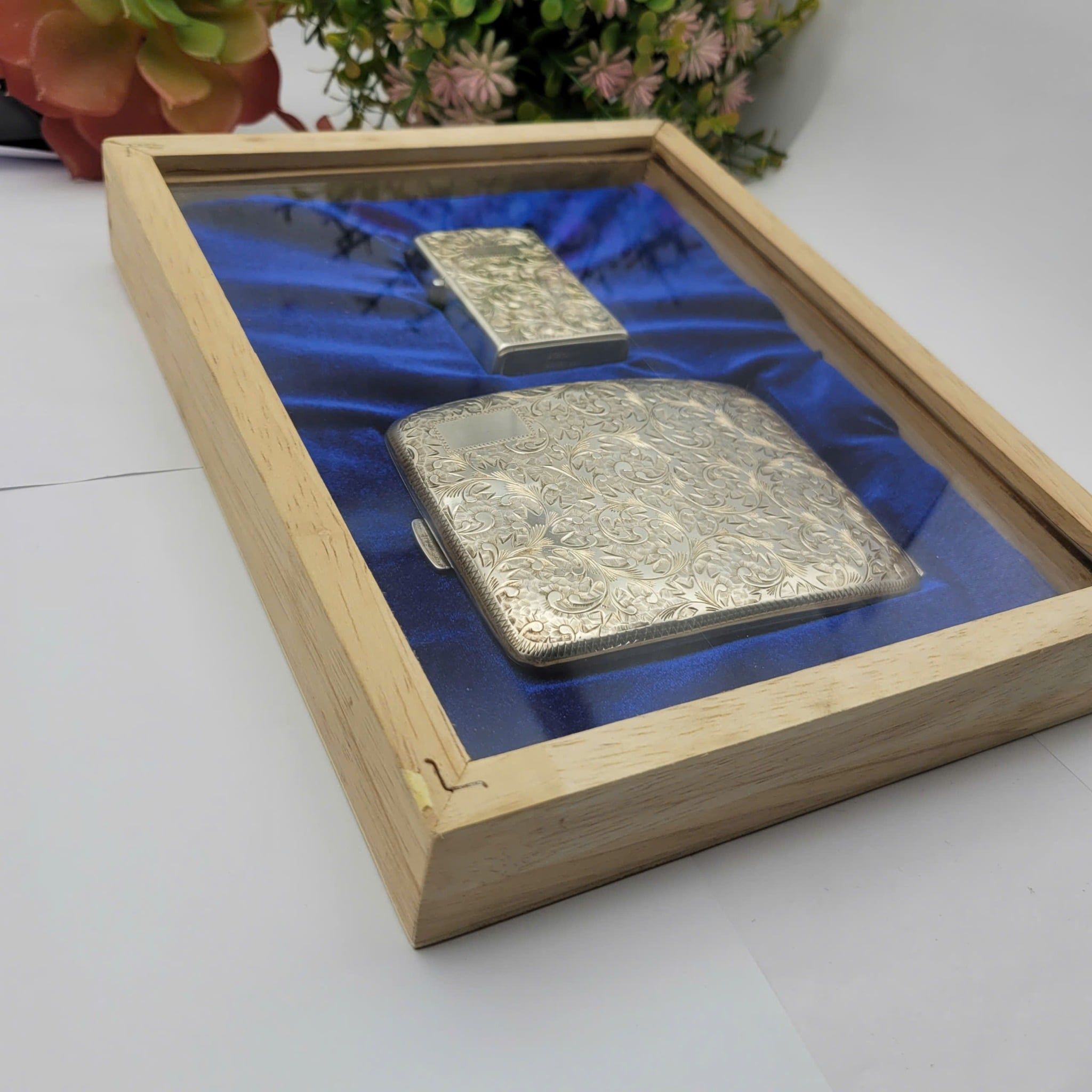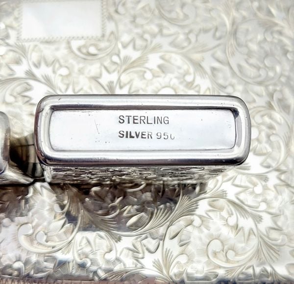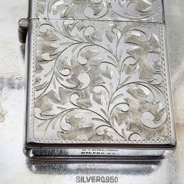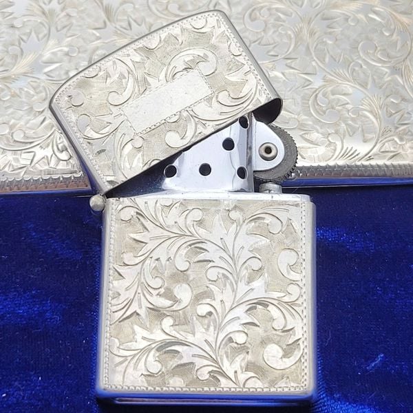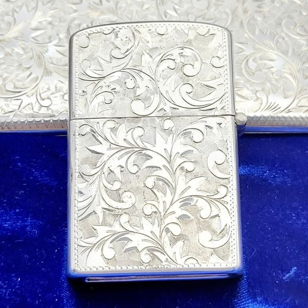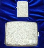 Hàng Sưu Tầm Xưa Vỏ Bạc Nguyên Khối Sản Xuất Thập Niên 1950s Sử Dụng Ruột Zippo Chưa Qua Sử Dụng, Do Nghệ Nhân Người Nhật Làm Toàn Bộ Bằng Tay Thủ Công, Rất Hiếm Gặp, Có Giá Trị Sưu Tầm Cao. Một Trong Những Bộ Bật Lửa Kèm Hộp Thuốc Bằng Bạc 950 Hiếm Hoi Còn Sót Lại Trong Giới Sưu Tầm Có Giá Trị Lịch Sử Và Văn Hoá Rất Lớn - Toàn Thân Chạm Khắc Hoa Văn Tỉ Mỉ Tinh Tế