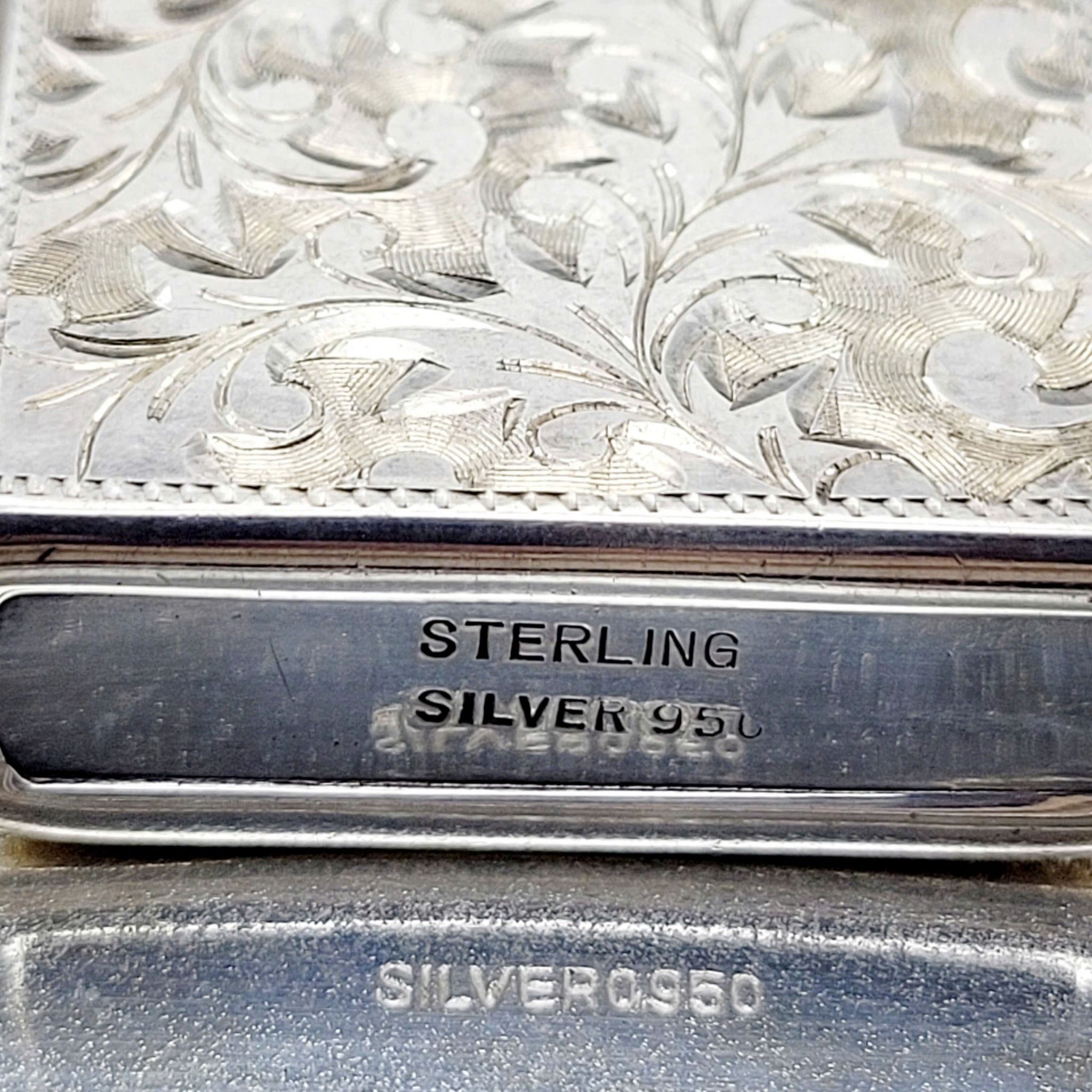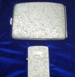 Bộ Bật Lửa Bạc Nguyên Khối Thủ Công Thập Niên 1950 Hoa Văn Tinh Xảo Cực Hiếm ZB80