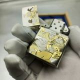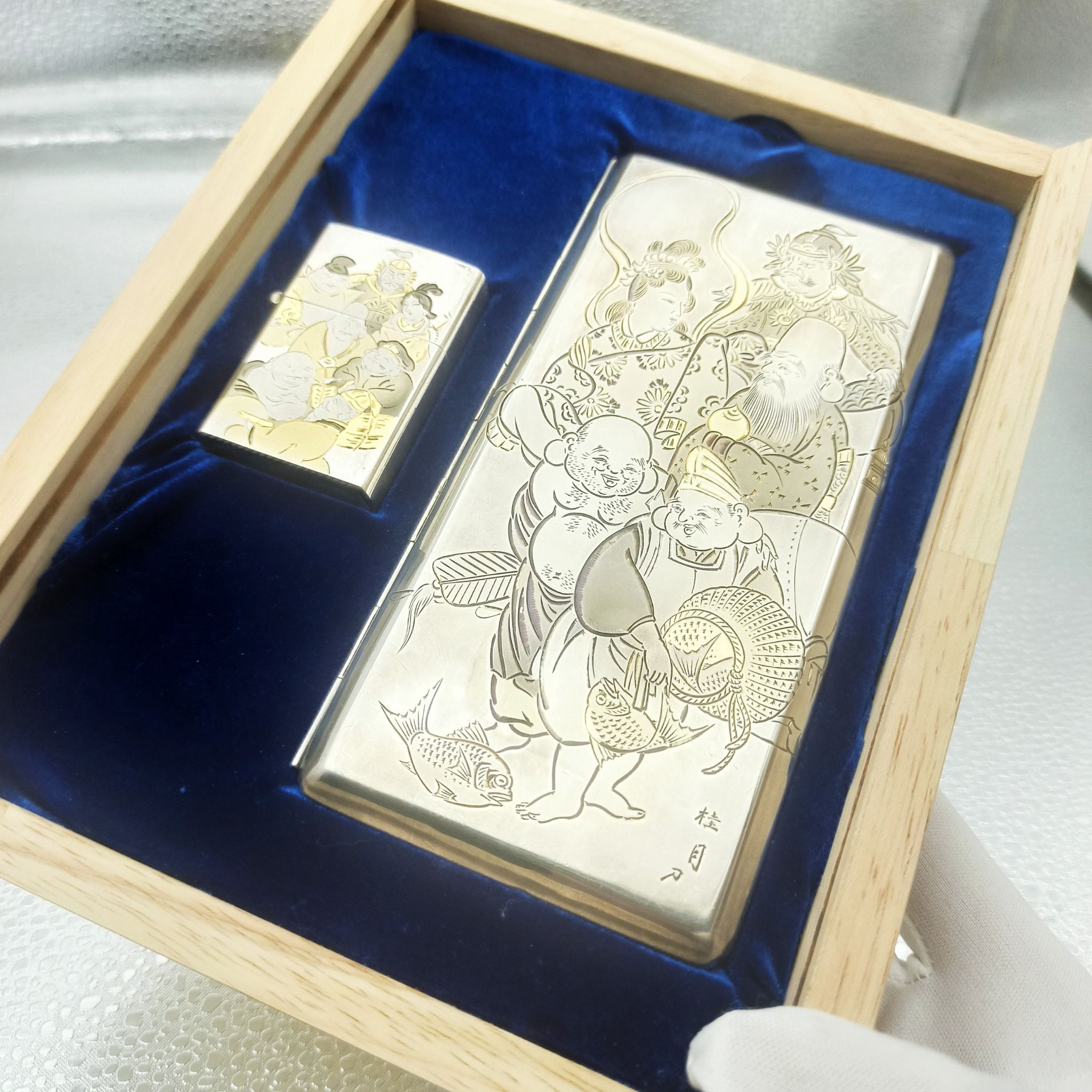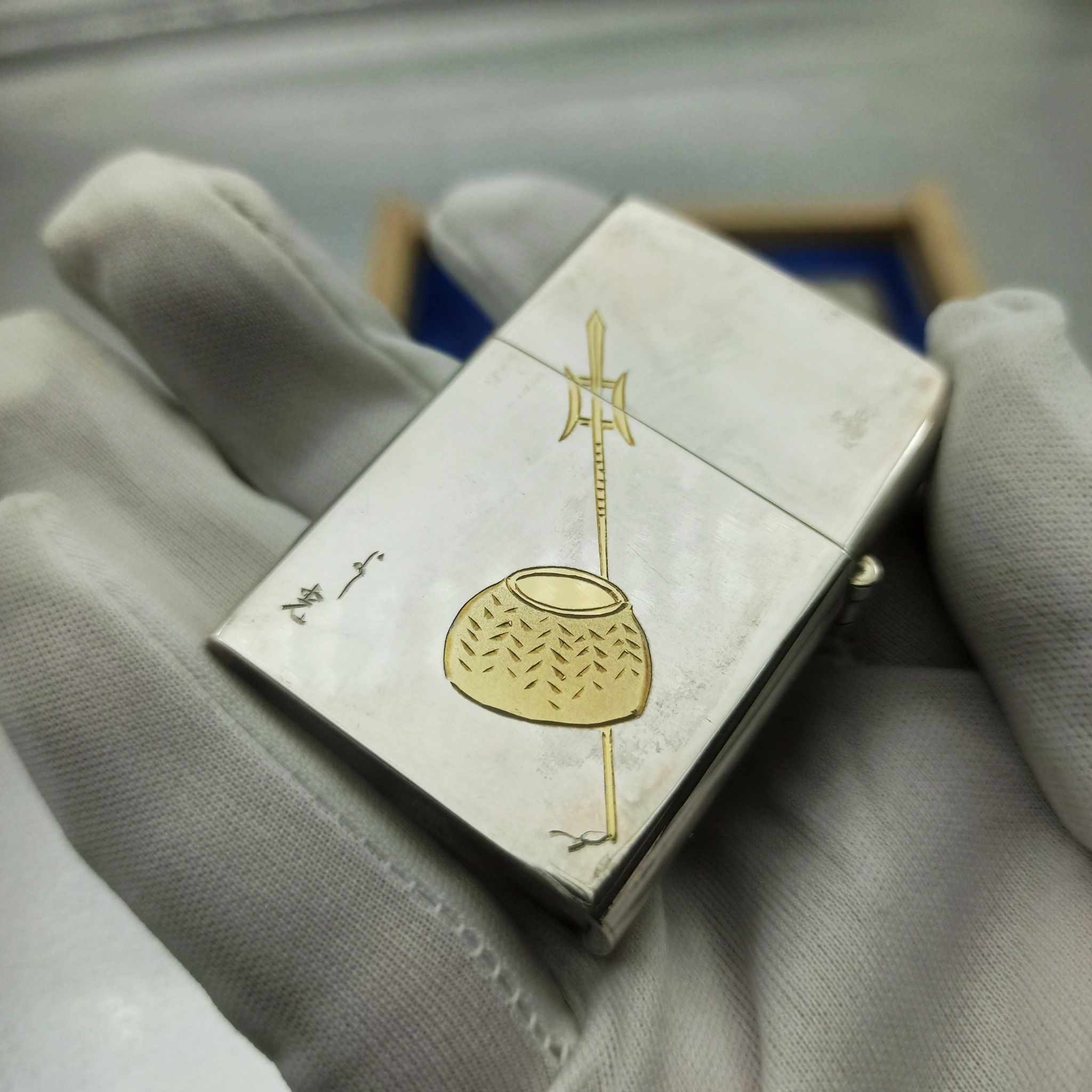 Hàng Sưu Tầm Xưa Vỏ Bạc Nguyên Khối Sản Xuất Thập Niên 1950s Sử Dụng Ruột Zippo Chưa Qua Sử Dụng, Do Nghệ Nhân Người Nhật Làm Toàn Bộ Bằng Tay Thủ Công, Rất Hiếm Gặp, Có Giá Trị Sưu Tầm Cao. Một Trong Những Bộ Bật Lửa Kèm Hộp Thuốc Bằng Bạc 950 Hiếm Hoi Còn Sót Lại Trong Giới Sưu Tầm Có Giá Trị Lịch Sử Và Văn Hoá Rất Lớn - Toàn Thân Chạm Khắc Hoa Văn Tỉ Mỉ Tinh Tế