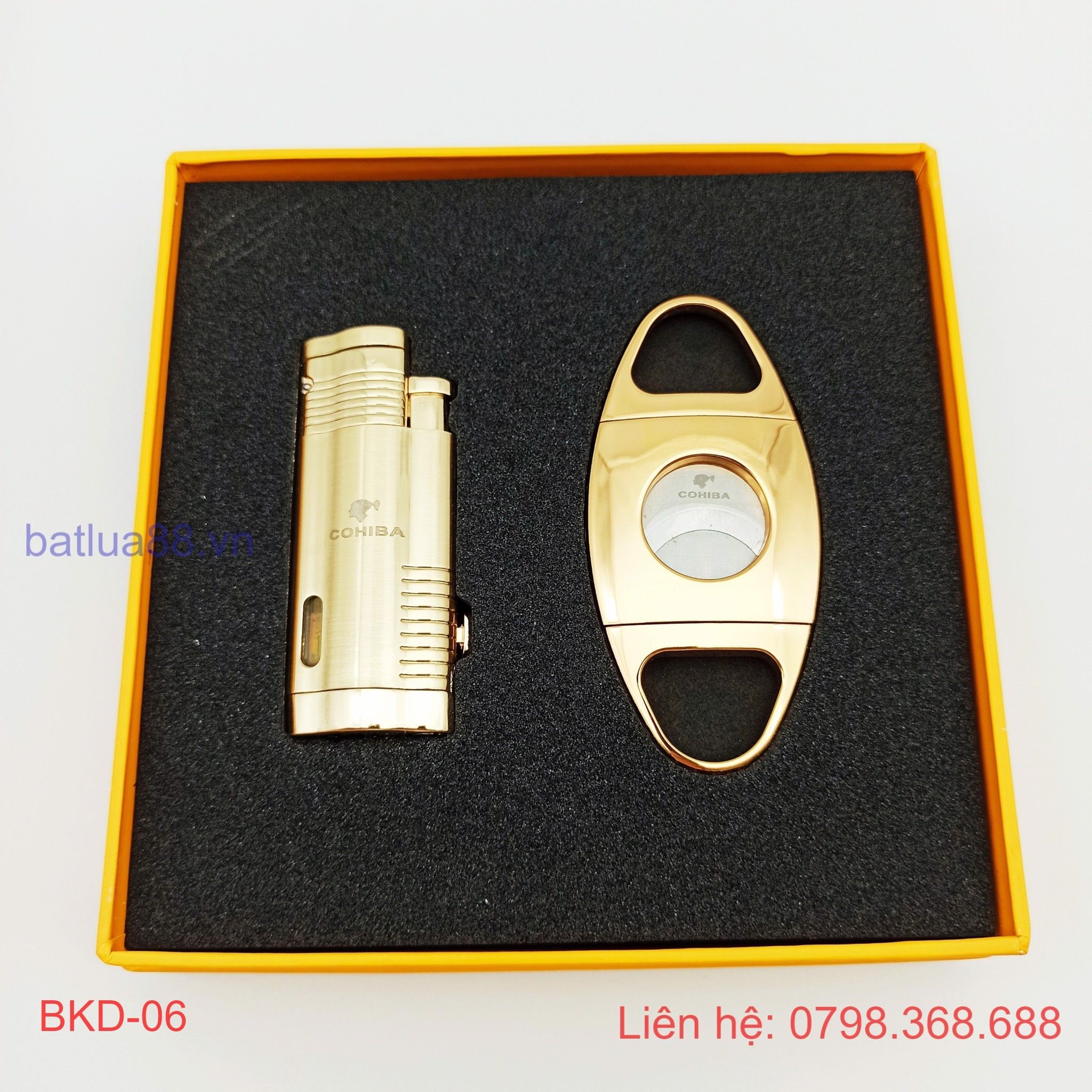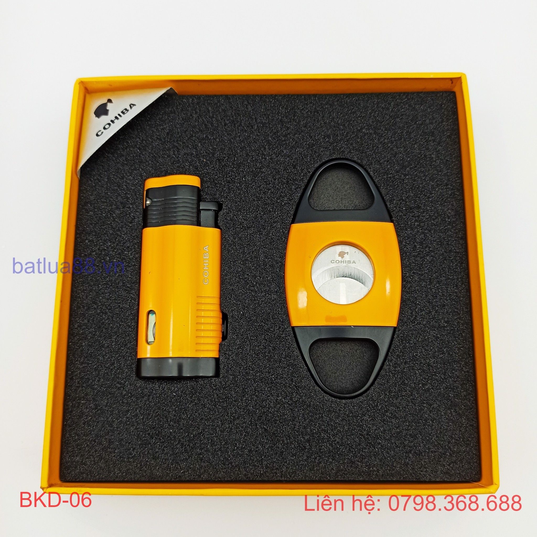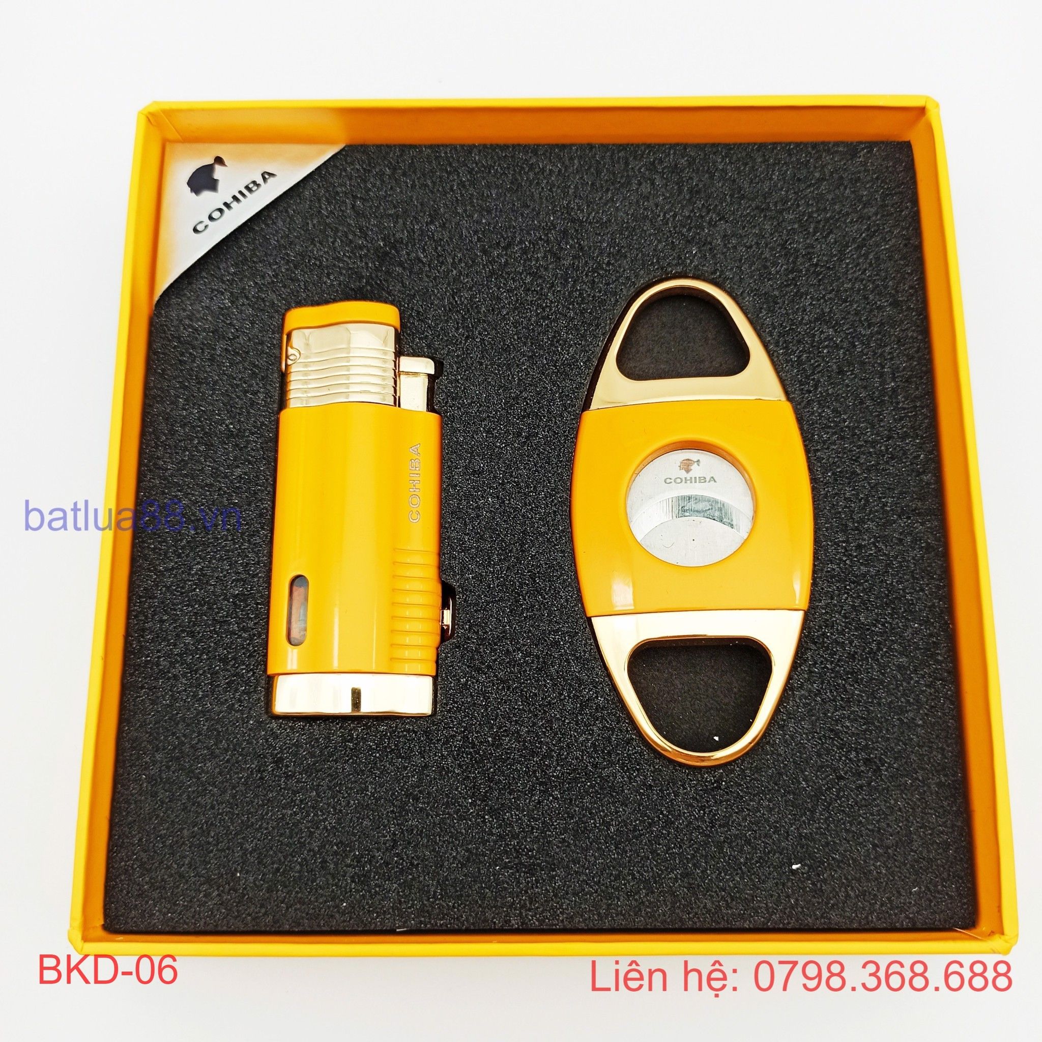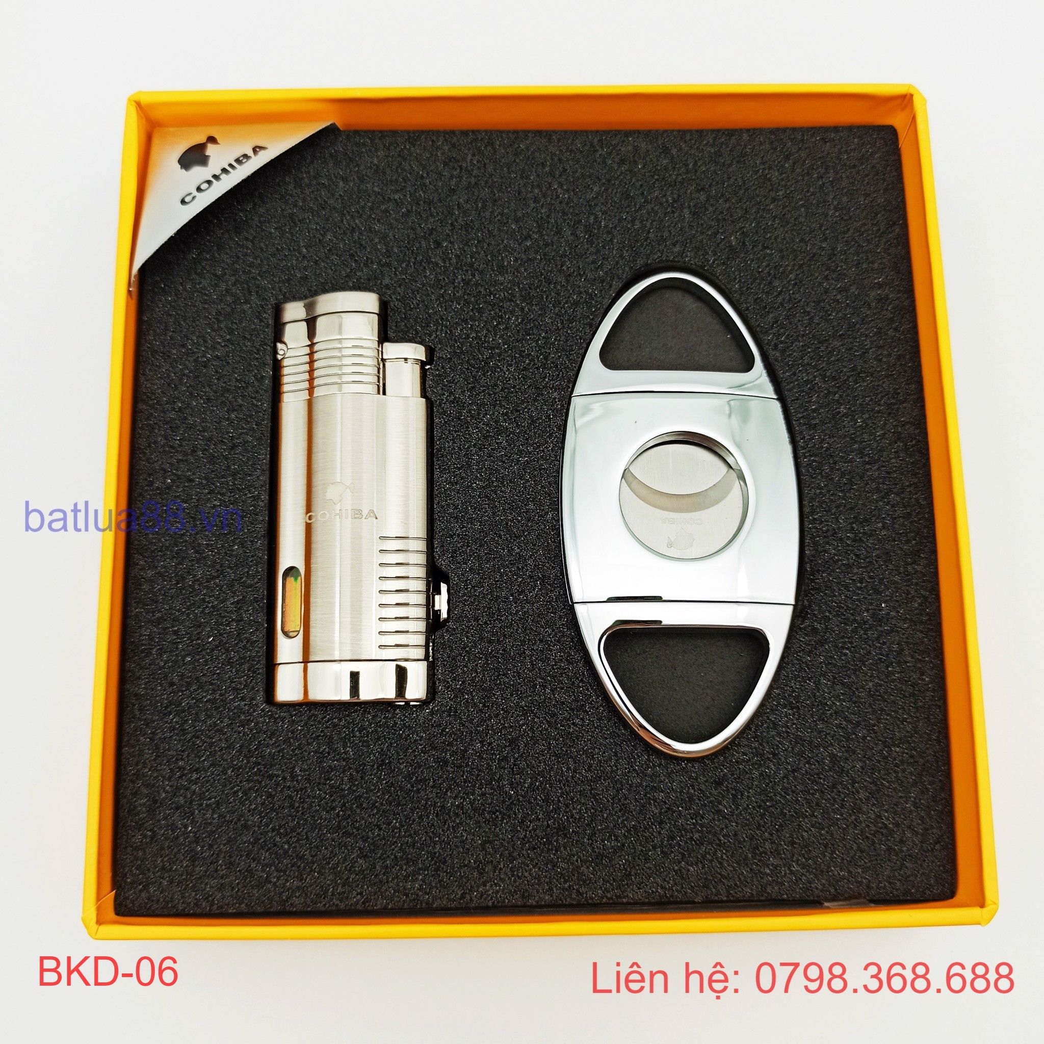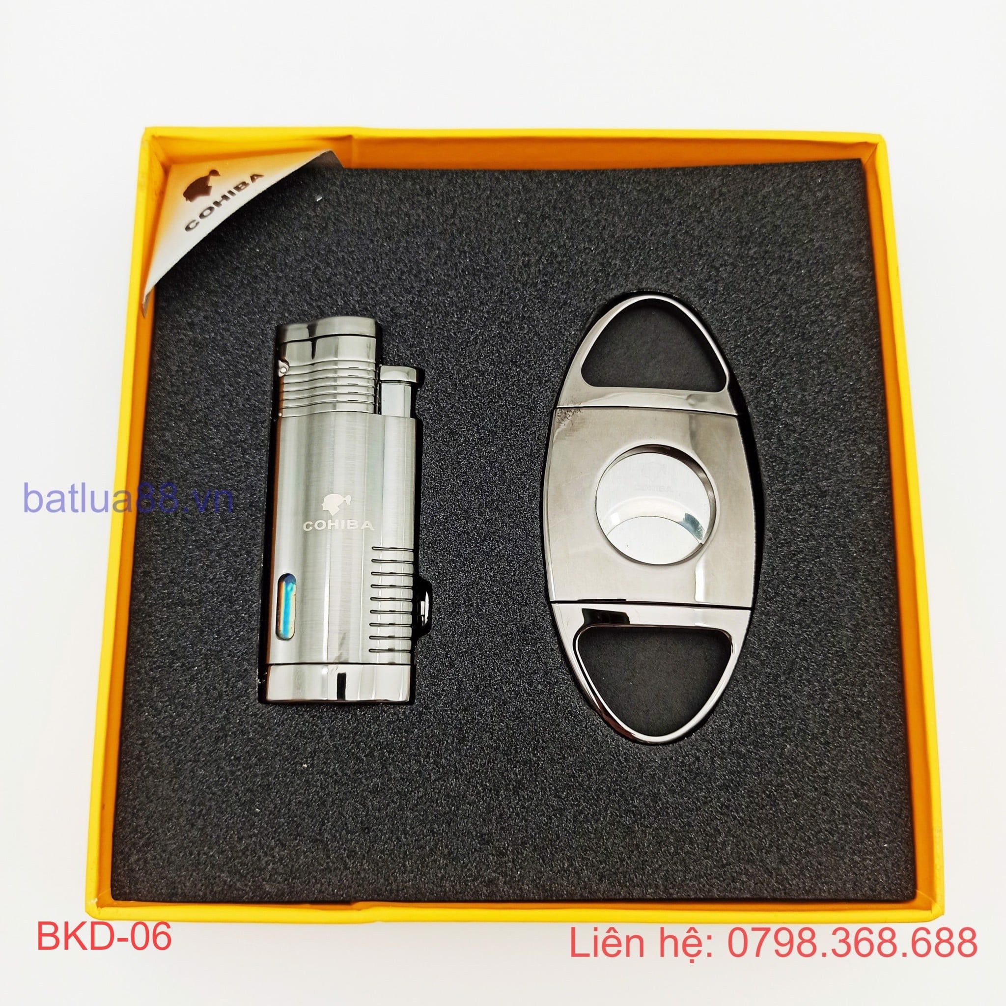 BỘ BẬT LỬA KHÒ XÌ GÀ 3 TIA + DAO CẮT ( CIGAR ) COHIBA CÁC MẦU BKD-07