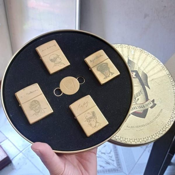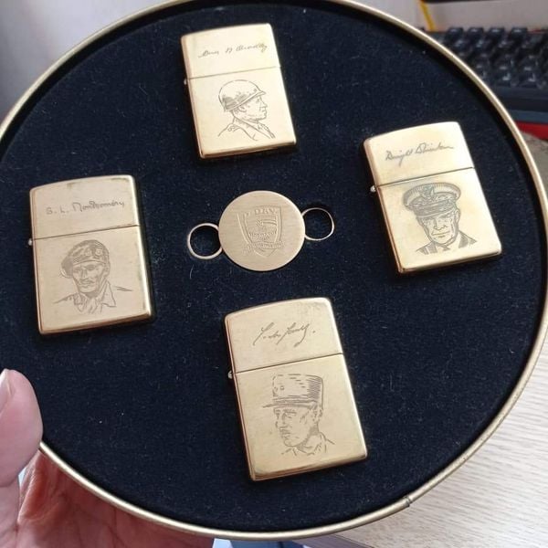 Set Bật Lửa Đồng Khối Khắc Ăn Mòn 4 Vị Tướng D - Day Đời X La Mã Sản Xuất Năm 1994 Hiếm Gặp ZS84