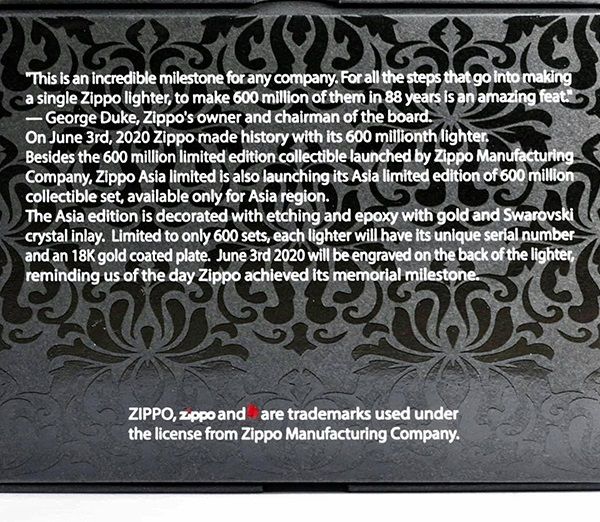 Zippo 600 Million Collectible Set Asia Limited Edition Bản Cực Hiếm 600 Chiếc Toàn Cầu – ZQH37