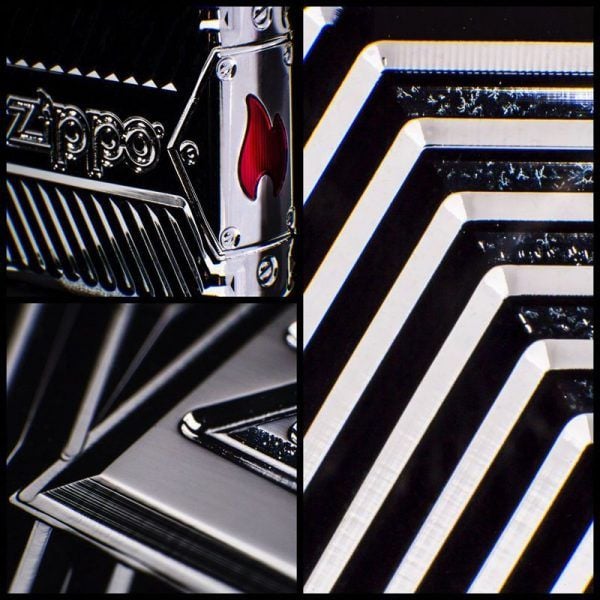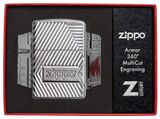 Mẫu bật lửa được hãng thiết kế bằng quy trình khắc sâu MultiCut 360° trên cả 4 mặt của Zippo, tạo lên những đường khắc sâu kèm logo Zippo đầy độc đáo ở 2 mặt trước, sau chiếc bật lửa. Ngọn lửa màu đỏ phủ Epoxy ở cạnh hông tạo thành điểm nhấn cho chiếc bật lửa trở nên sang trọng và lung linh hơn bao giờ hết.