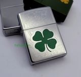 BẬT LỬA ZIPPO CHROME BÓNG HOA VĂN SƠN HẤP NHIỆT CỎ 4 LÁ MAY MẮN Z179