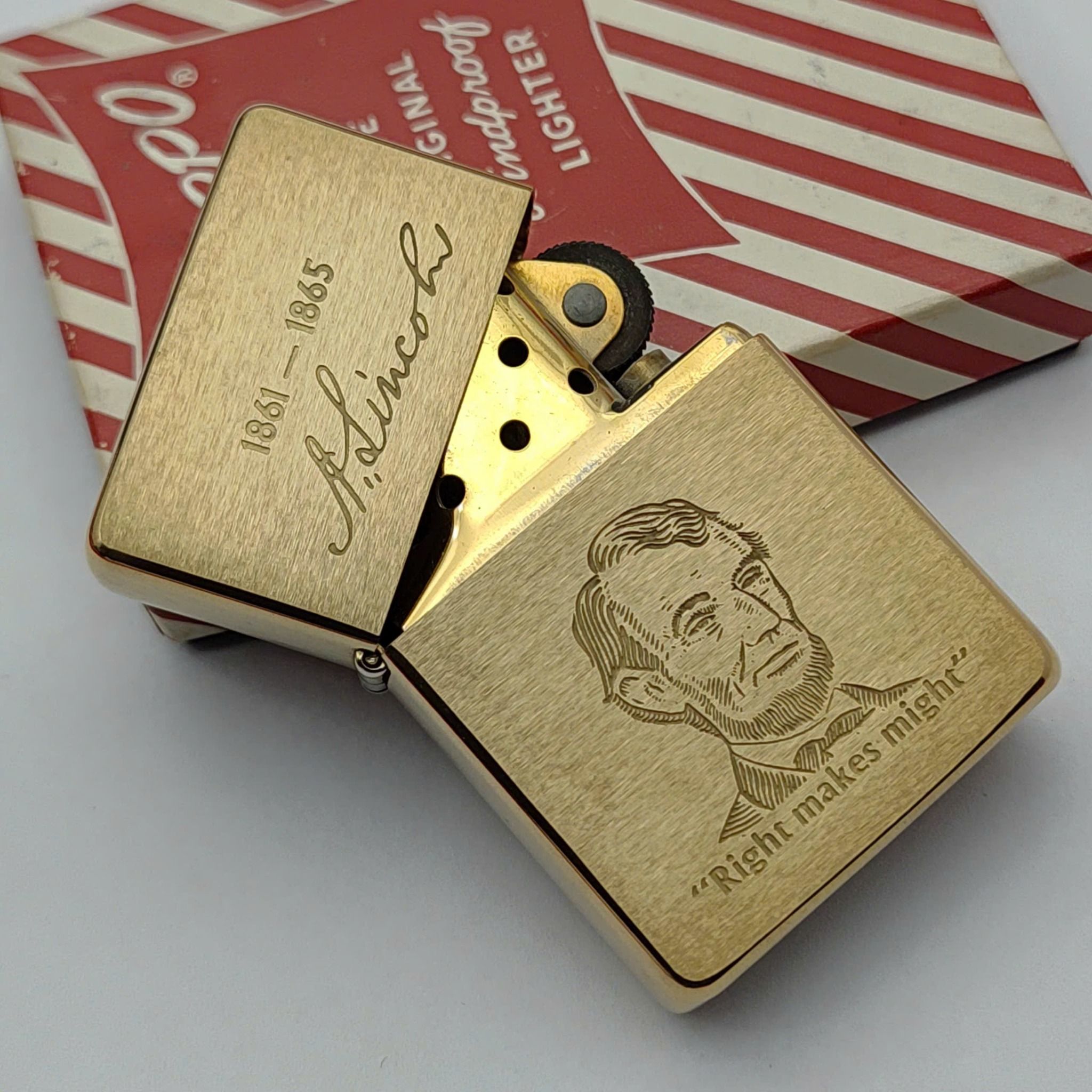ZIPPO VINTAGE BRASS KHÔNG CHẶT GÓC CHỦ ĐỀ TỔNG THỐNG HOA KỲ RẤT HIẾM ĐỜI V LA MÃ SẢN XUẤT 1989 - ZQH192